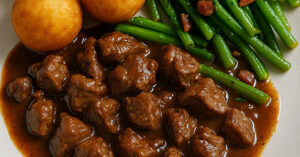 Lammragout mit Speckbohnen und Pommes Dauphine